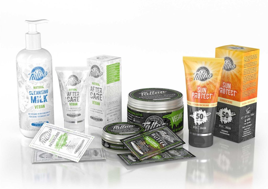 Neben unseren Gutscheinen sind unsere Tattoo-Aftercare-Produkte ein Muss für die optimale Pflege deines neuen Tattoos. Die speziell entwickelte Aftercare-Produktserie wurde mit hochwertigen und natürlichen Inhaltsstoffen zusammengestellt, um die Heilung deiner Haut zu unterstützen und dein Tattoo langfristig strahlen zu lassen. Ob Tattoo-Creme, Salbe oder Pflegebalsam – hier findest du alles, was du für die perfekte Nachsorge benötigst.